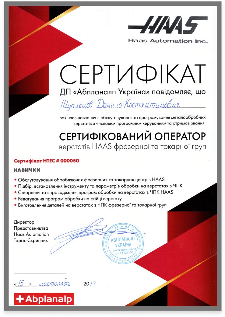 Після завершення курсу учасники отримують офіційний сертифікат від HAAS Abplanalp (Київ) та: